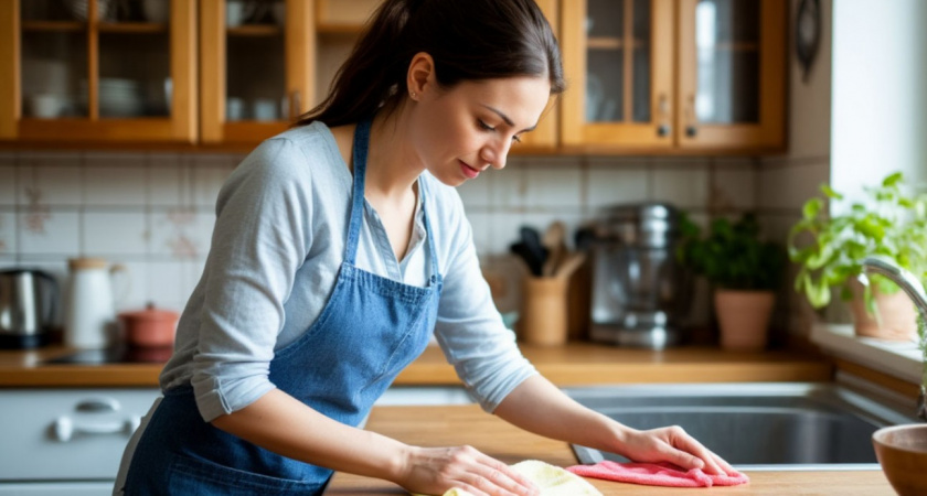 - Убираем остатки: Смываем остатки теплой водой и насухо протираем шкафы.