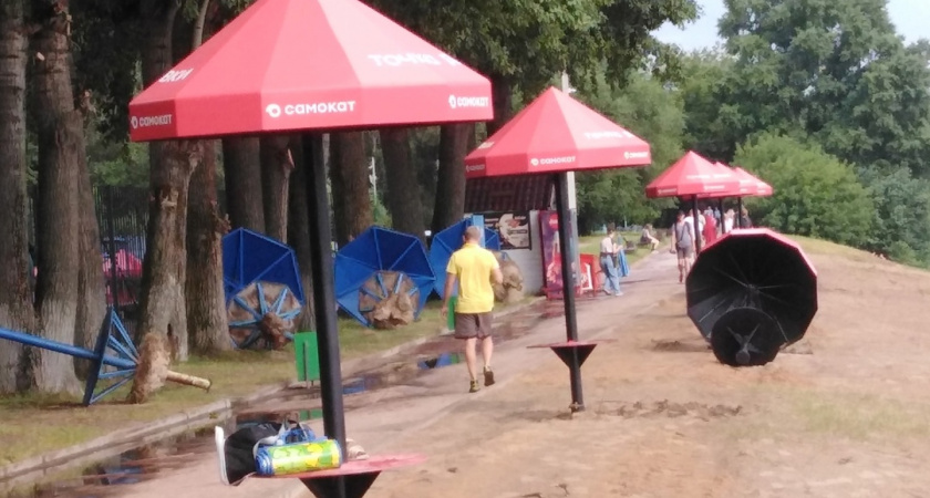 В тверских социальных сетях жители массово возмущаются тем, как выглядят новые зонтики от солнца, установленные на городском пляже несколько дней назад. Их возмущает и брендированная реклама службы доставки, напечатанная на зонтиках, и то, как они сделаны сами по себе, с точки зрения эргономики.