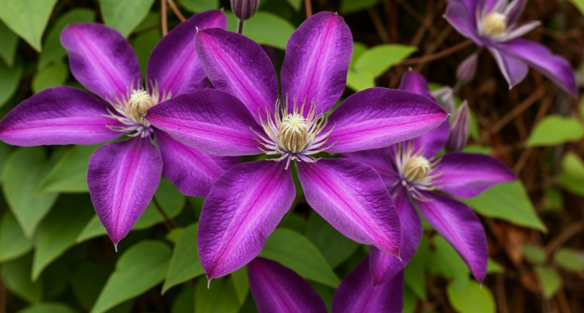 Клематис фиолетовый добавит вертикальных акцентов. Его роскошные цветы украшают сад все лето, а неприхотливость делает его любимцем начинающих садоводов.
