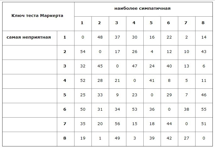 В таблице по номерам выбранных фигурок определите на пересечении строки и столбца номер своей характеристики.