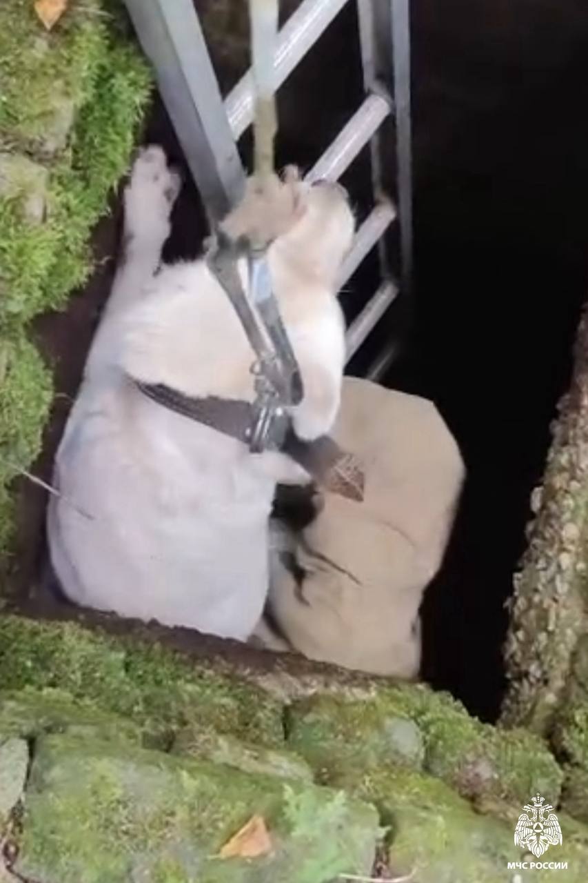 Благодаря такой невероятной сообразительности и преданности четвероногого друга, на место оперативно были вызваны специалисты 27-й пожарно-спасательной части. Они незамедлительно прибыли и благополучно извлекли животное из подземного заточения.