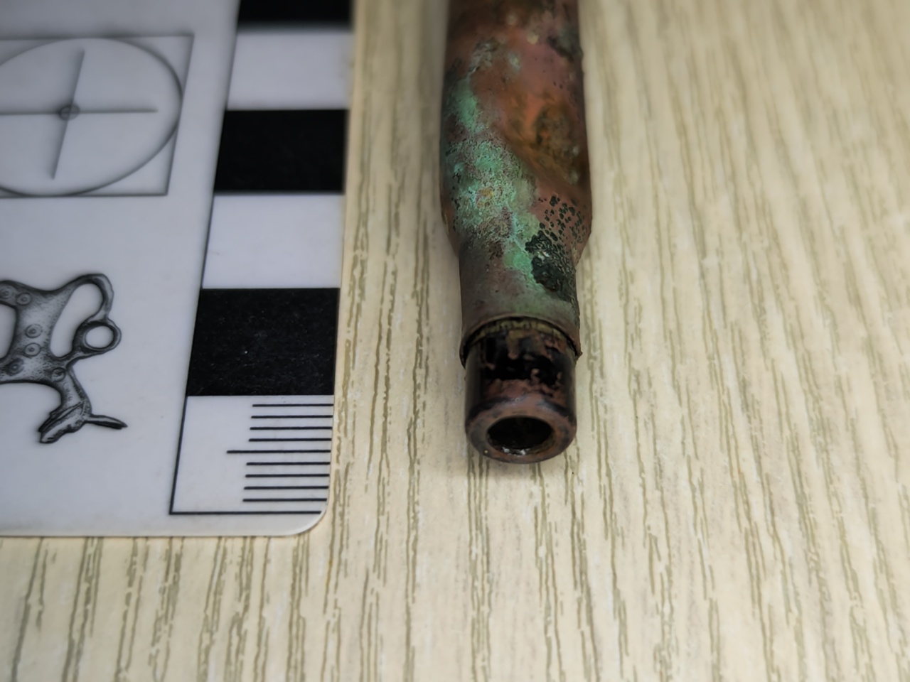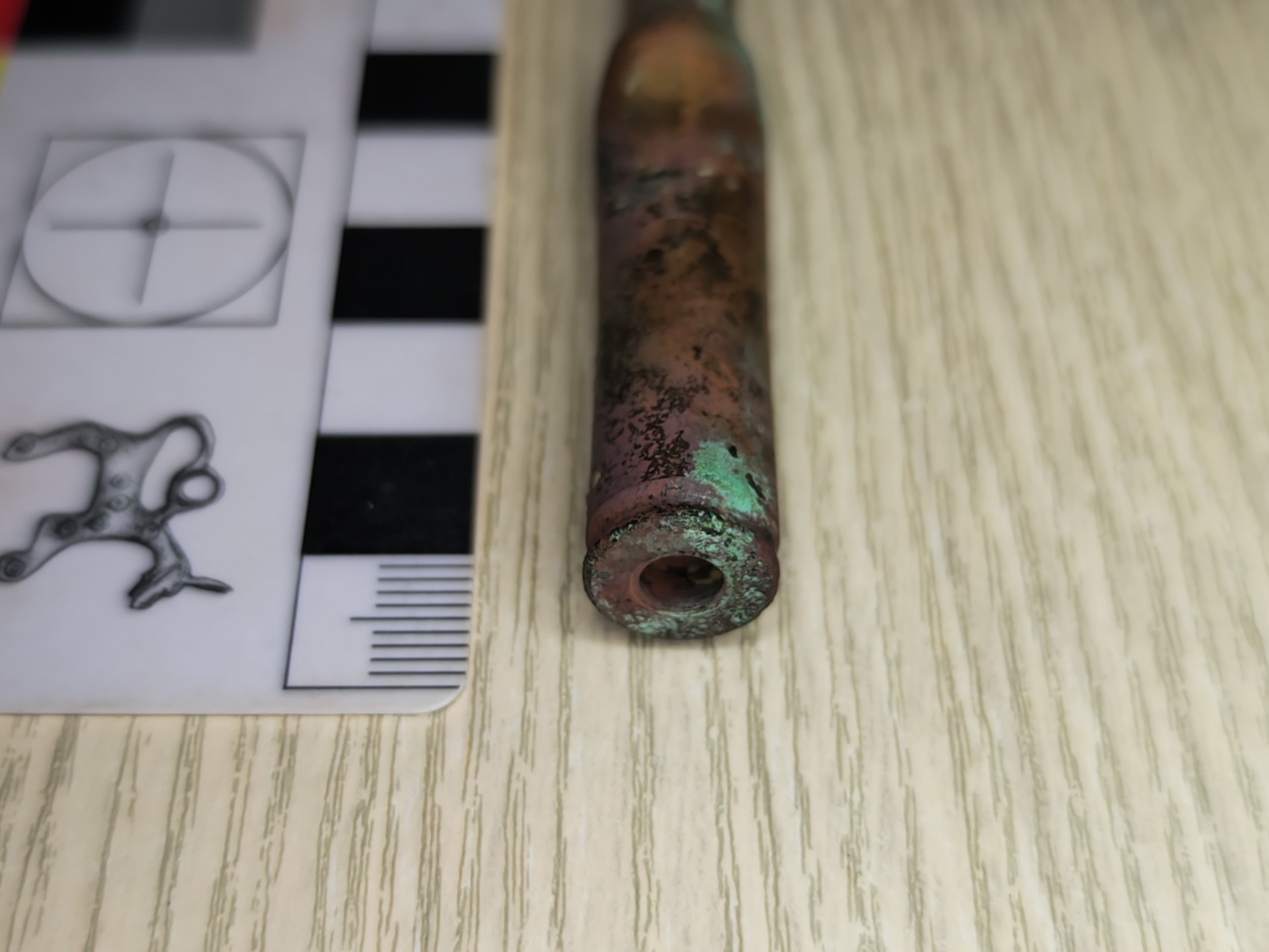 Участники отряда предположили, что это так называемая «гильза-рукогрейка» кустарное устройство, куда клали тлеющий уголек, чтобы согреть руки или что-то нагреть. Подобные переделанные гильзы часто встречаются при исследовании окопов и других укрытий периода Великой Отечественной войны.