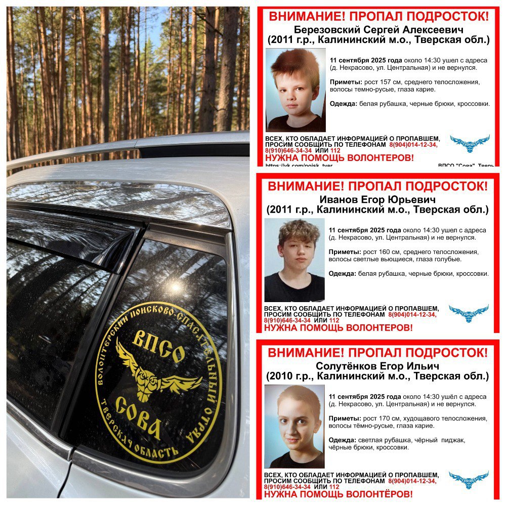 В деревне Некрасово под Тверью произошло тревожное событие: три подростка бесследно пропали и до сих пор не вернулись домой. Информация о пропаже поступила около 14:30 11 сентября. Речь идет о трех мальчиках, которые были вместе в момент исчезновения.