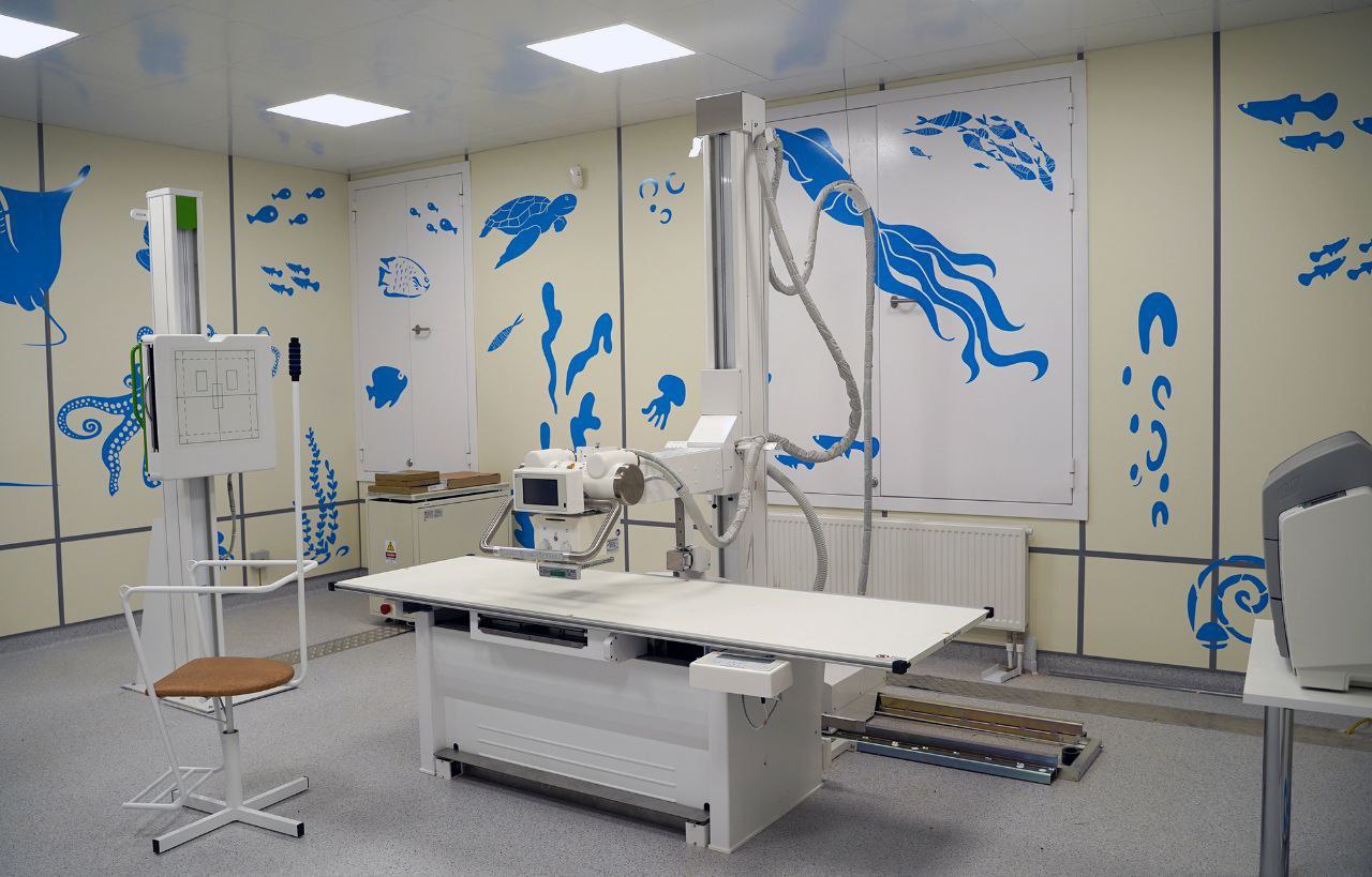 Сейчас в поликлинике заканчивают внутреннюю отделку и приводят в порядок территорию вокруг здания. Параллельно устанавливается медоборудование в частности, уже смонтирован рентген-аппарат.