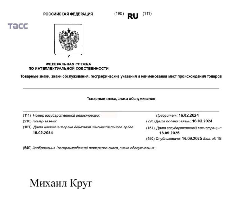 Регистрация товарного знака осуществлена по пяти классам Международной классификации товаров и услуг, что обеспечивает широкий охват различных категорий продукции. Исключительное право на использование бренда будет действовать в течение десяти лет — до февраля 2034 года. Ранее Ирина Круг уже зарегистрировала товарный знак «Михаил Круг» для распространения музыкальной продукции, что свидетельствует о планомерной работе по защите интеллектуальной собственности, связанной с наследием музыканта.