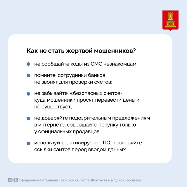 «В Тверской области участились случаи мошенничества! Всегда проверяйте номера, с которых вам звонят, и никогда не давайте коды по телефону!»
