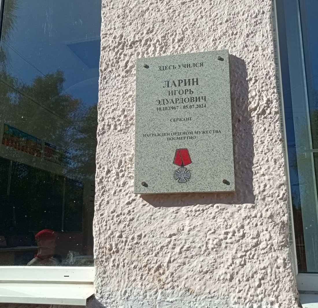 22 сентября в средней школе №5 города Ржева состоялось торжественное открытие мемориальной доски, посвященной памяти выпускника этой школы сержанта Игоря Ларина, который погиб, выполняя воинский долг в зоне специальной военной операции.