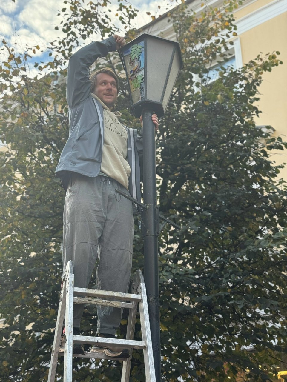 «Давно уже хотел это сделать. Эту часть улицы планируют реставрировать в следующем году, фонари тоже будут менять. Ну а я пока хочу сделать еще несколько таких картин», — написал Маковский на своей персональной странице во «ВКонтакте».